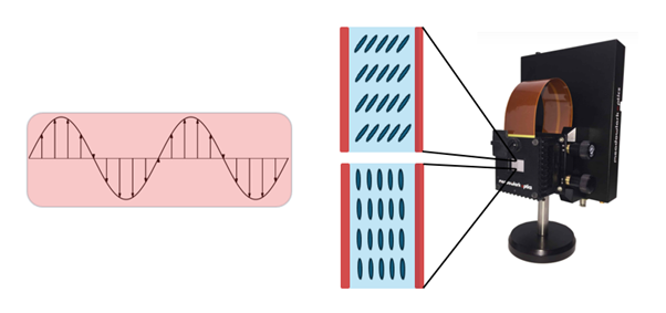 But how do we control that orientation? Simple, we apply a voltage across the cell. The voltage causes the molecules to rotate and align with the electric field, thereby changing the phase accumulated by the light passing through the pixel. By independently controlling the voltage at each pixel, we can design a custom phase mask with high precision.